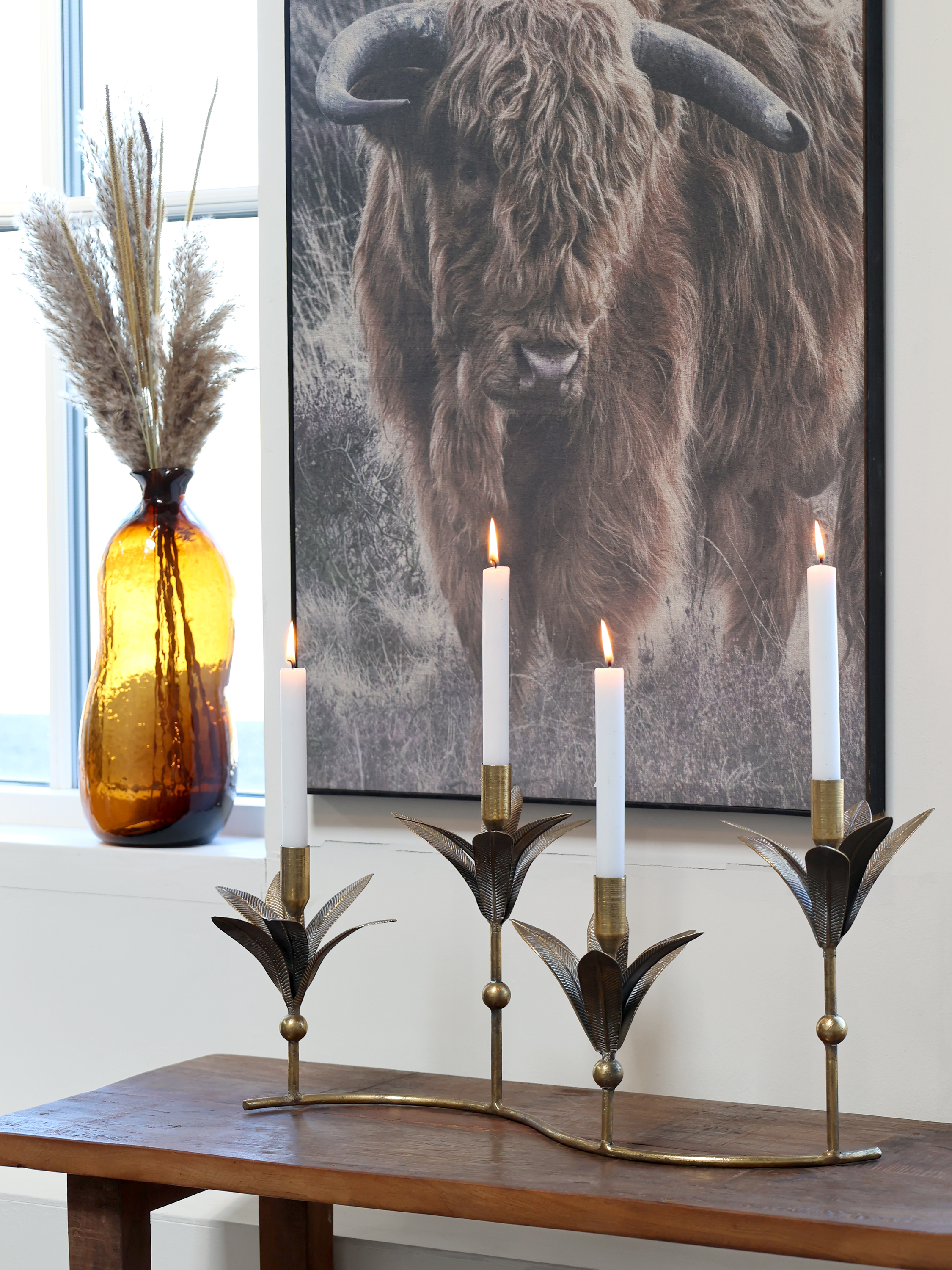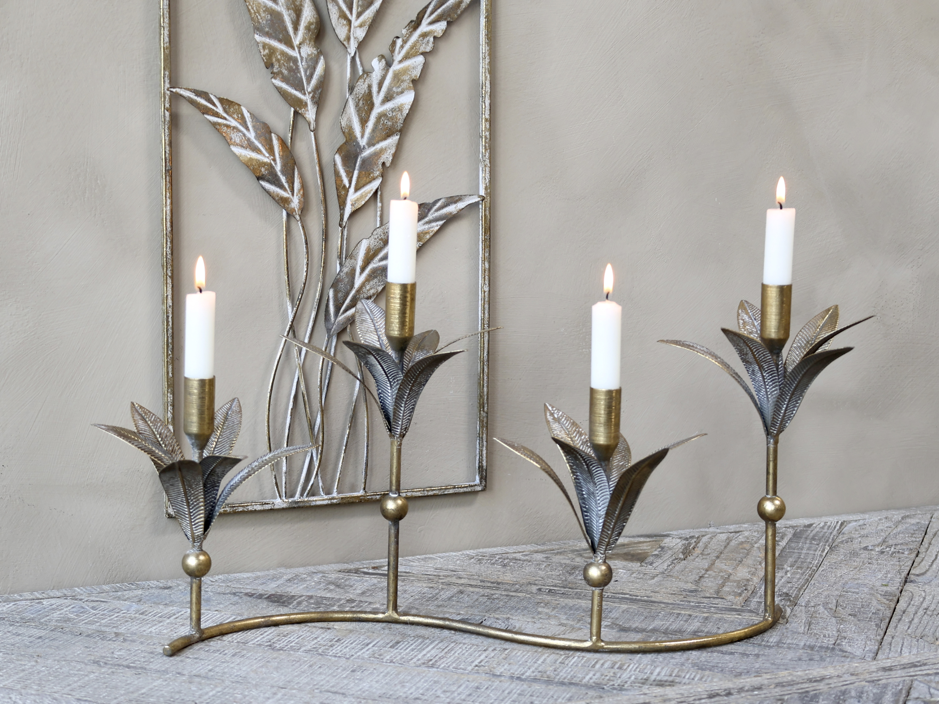 Mobile Preview: Kerzenständer Messing m.Blattdekor H27x L50cm