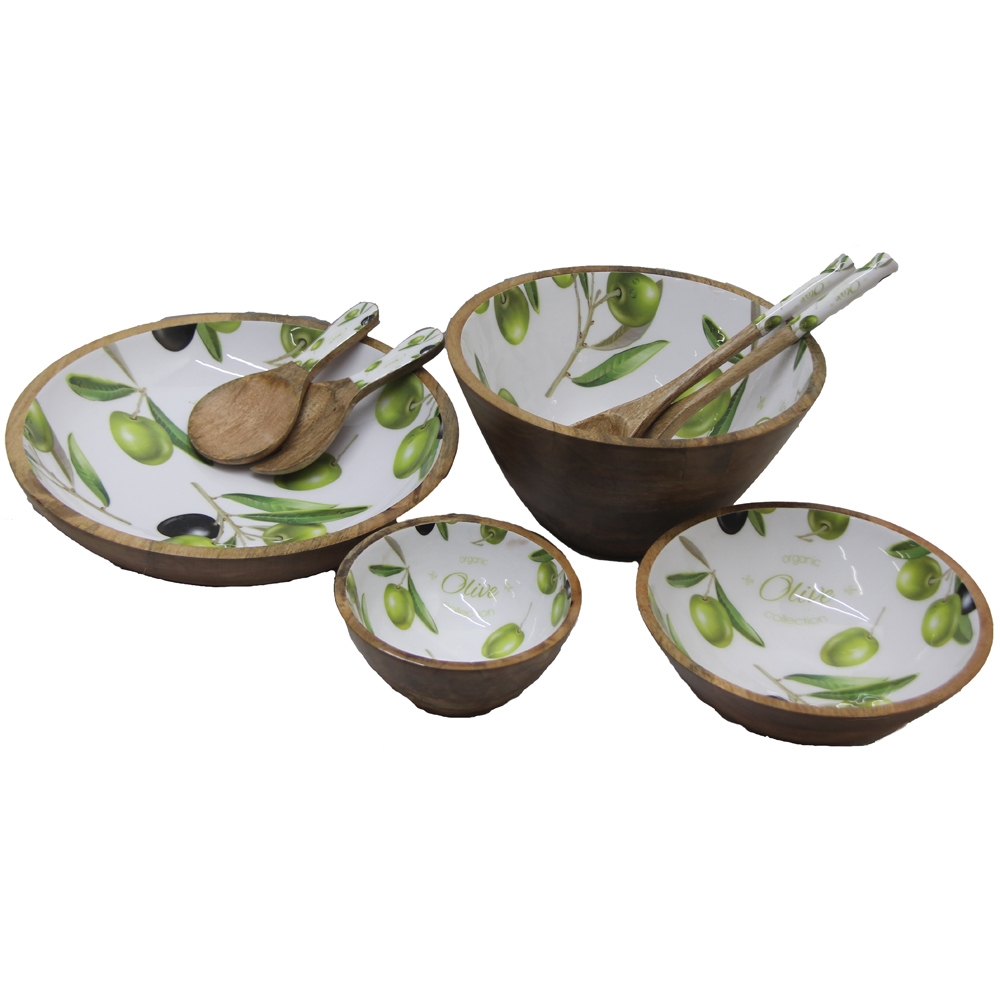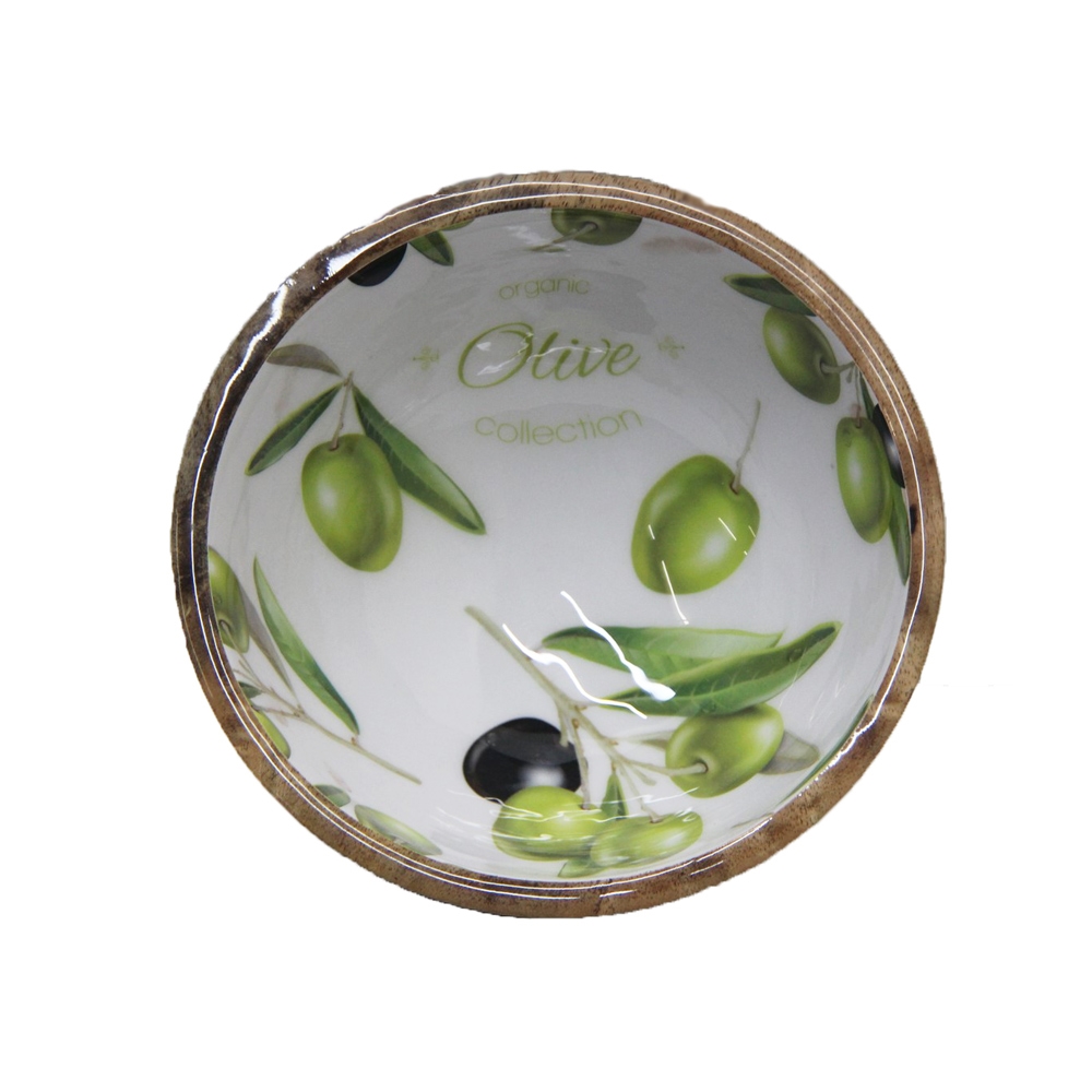 Salatschüssel Mangoholz Emaille Olive Ø24cm