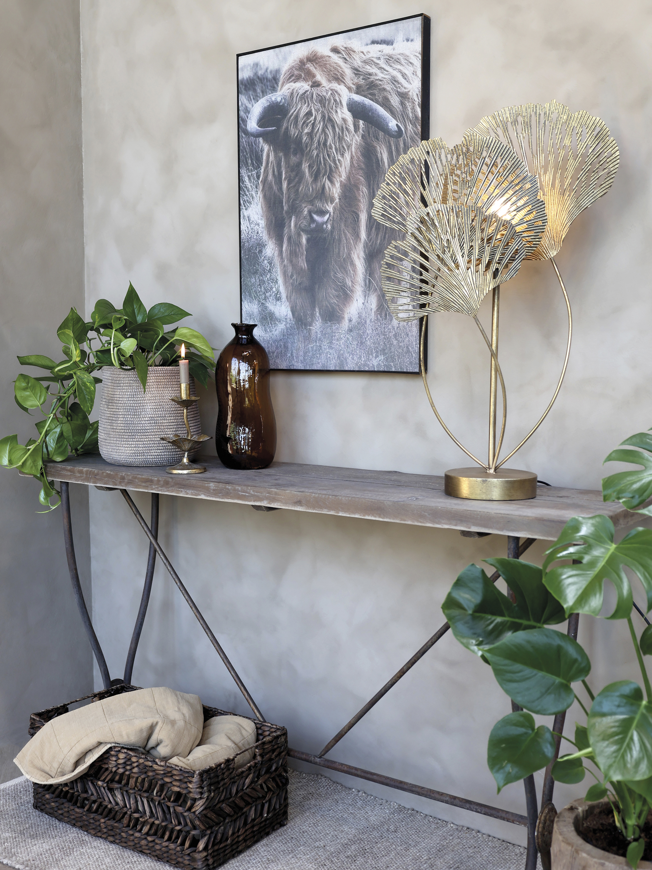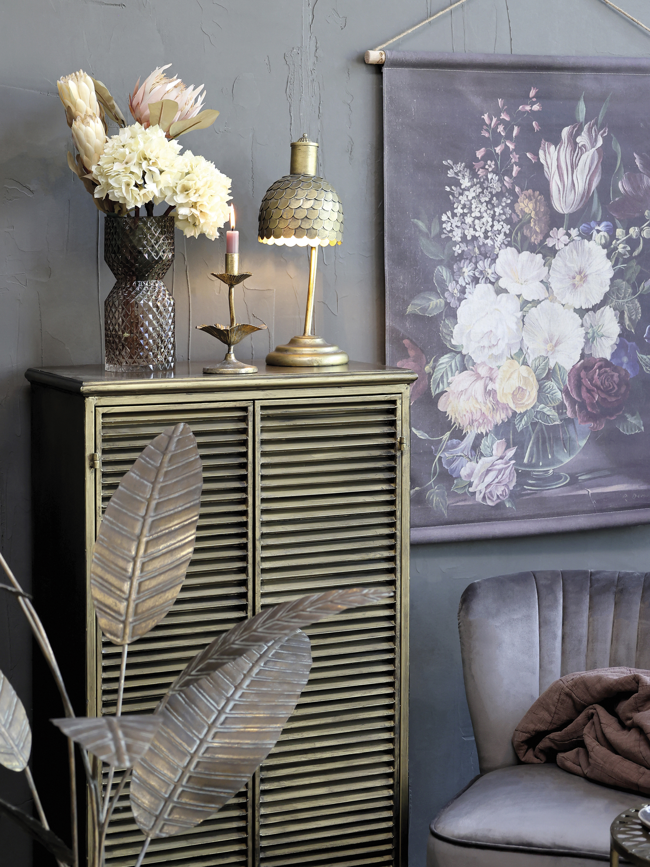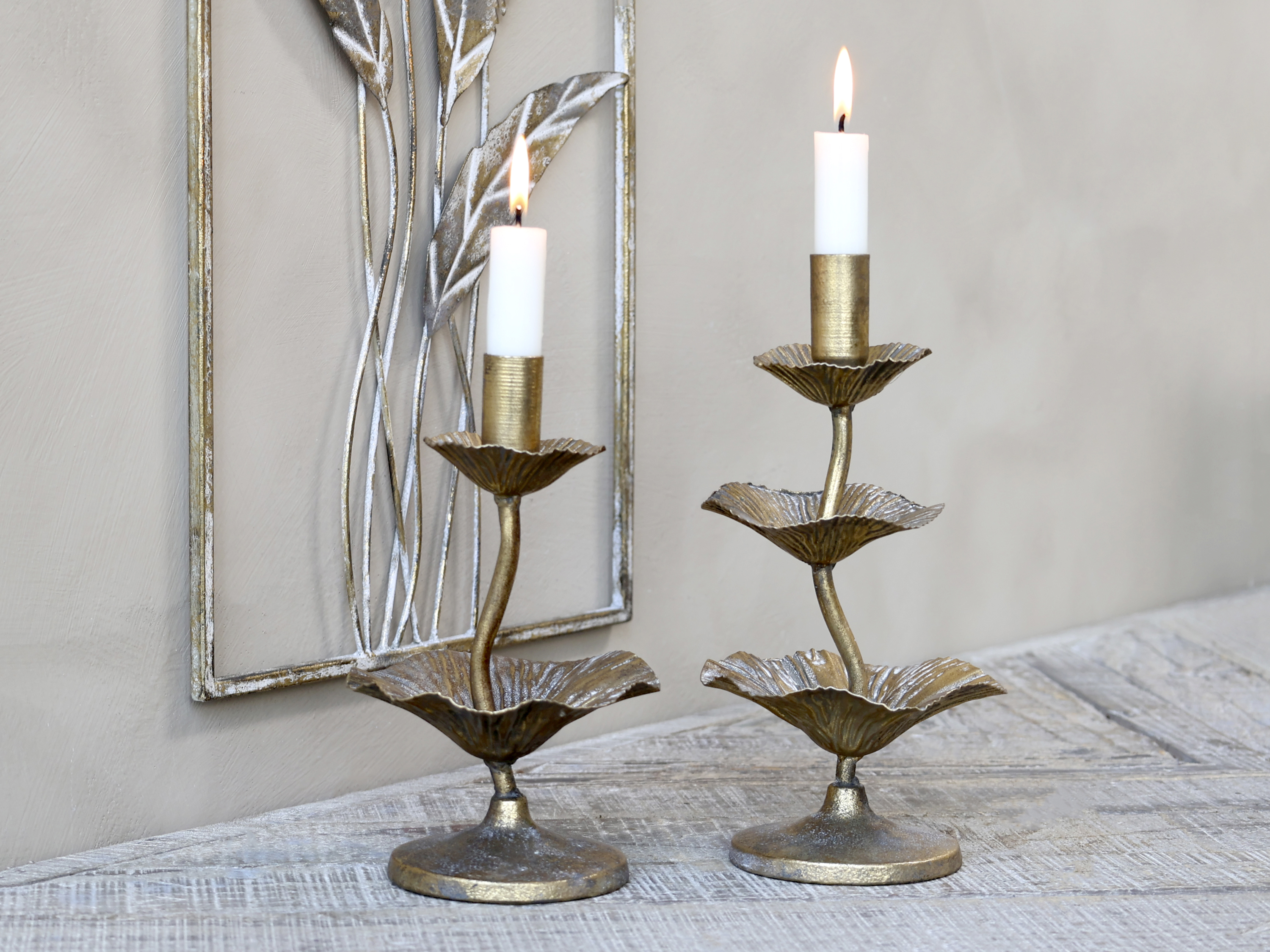 Mobile Preview: Candlestick brass with leaf decor H20Ø12,5cm