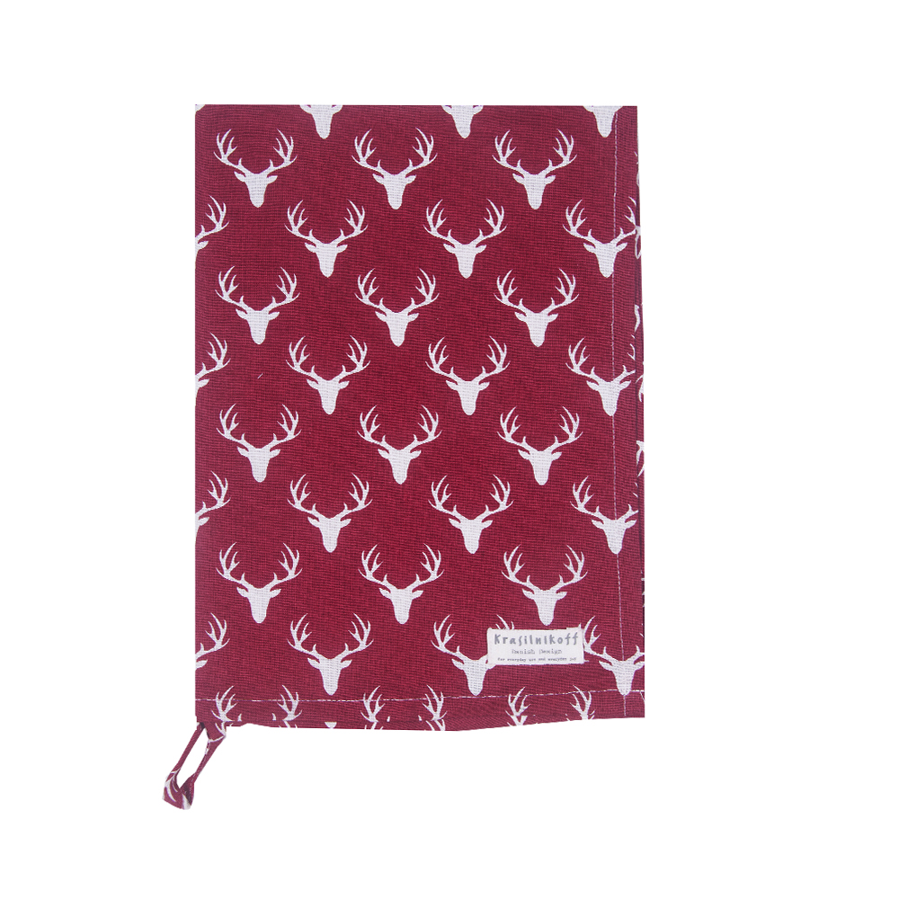 Krasilnikoff Tea Towel Deer 100% Cotton 50x70 Scarlet Red